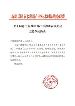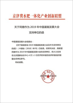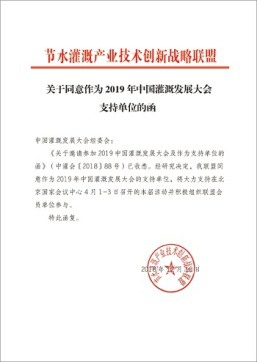 在2019年新年開篇之時(shí),來自全國(guó)各節(jié)水灌溉聯(lián)盟及協(xié)會(huì)對(duì)中國(guó)灌溉發(fā)展大會(huì)的支持回函如雨后春筍般紛紛到達(dá),本周之內(nèi),中國(guó)塑料加工工業(yè)協(xié)會(huì)塑料節(jié)水器材專業(yè)委員會(huì)、中國(guó)生態(tài)農(nóng)業(yè)產(chǎn)業(yè)技術(shù)創(chuàng)新戰(zhàn)略聯(lián)盟、節(jié)水灌溉產(chǎn)業(yè)技術(shù)創(chuàng)新戰(zhàn)略聯(lián)盟、新疆兵團(tuán)節(jié)水灌溉產(chǎn)業(yè)技術(shù)創(chuàng)新戰(zhàn)略聯(lián)盟、京津冀水肥一體化產(chǎn)業(yè)創(chuàng)新聯(lián)盟、黑龍江省智慧灌溉水肥一體化產(chǎn)業(yè)創(chuàng)新聯(lián)盟紛紛致函組委會(huì),表示將大力支持在北京國(guó)家會(huì)議中心4月1-3日召開的大會(huì)并積極組織相關(guān)會(huì)員單位參與同期活動(dòng)。
