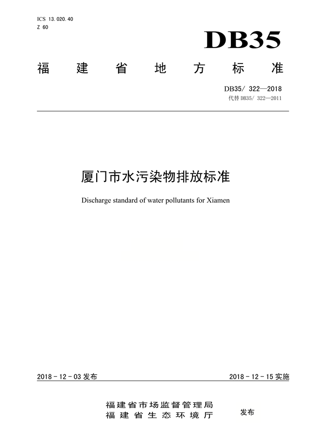 為持續(xù)改善廈門市轄區(qū)水環(huán)境質(zhì)量,促進(jìn)經(jīng)濟(jì)社會(huì)科學(xué)發(fā)展,在福建省市場(chǎng)監(jiān)督管理局的支持下,福建省生態(tài)環(huán)境廳、廈門市環(huán)境保護(hù)局組織廈門市環(huán)境科學(xué)研究院對(duì)原有的《廈門市水污染物排放標(biāo)準(zhǔn)》進(jìn)行修訂,新標(biāo)準(zhǔn)日前已經(jīng)福建省政府批準(zhǔn),于2018年12月15日起實(shí)施。