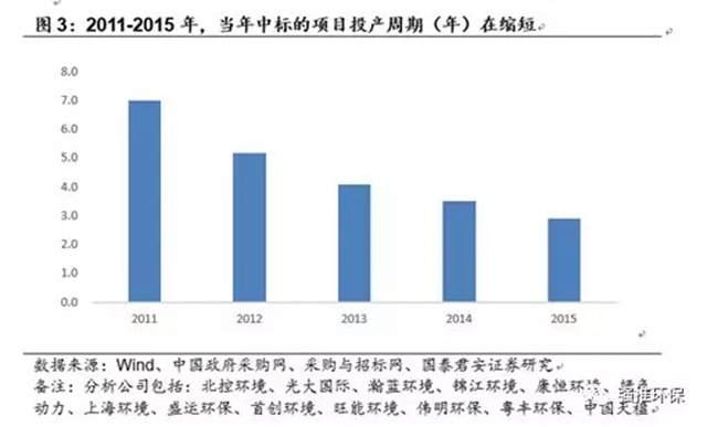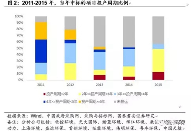 2011到2015年,當(dāng)年中標(biāo)項(xiàng)目的平均投產(chǎn)周期在縮短。