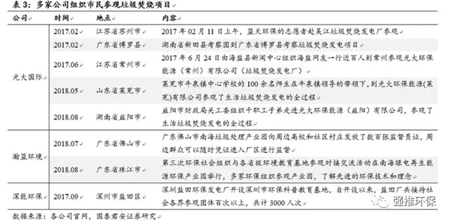 隨著行業(yè)發(fā)展成熟,政府和垃圾焚燒企業(yè)在選址上更有經(jīng)驗(yàn),群眾宣傳教育和溝通更加到位,行業(yè)龍頭公司定期組織市民參觀垃圾焚燒項(xiàng)目并公開實(shí)時(shí)煙氣排放數(shù)據(jù)等宣傳,有效的緩解居民負(fù)面情緒,取得其認(rèn)可和支持;此外,龍頭公司品牌效應(yīng)較為突出,更易被信賴,因此群體性事件帶來的負(fù)面效應(yīng)也相對(duì)較少。