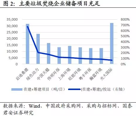 重點(diǎn)公司在手項(xiàng)目充足,大部分仍未投運(yùn):目前垃圾焚燒行業(yè)的上市公司已投運(yùn)產(chǎn)能總計(jì)18.9萬噸/日,儲備項(xiàng)目(在建+籌建)產(chǎn)能總計(jì)24.1萬噸/日,總體未投運(yùn)產(chǎn)能與投運(yùn)產(chǎn)能比例達(dá)127%,這些項(xiàng)目是未來公司業(yè)績持續(xù)增長的重要基礎(chǔ)。1)目前主要垃圾焚燒上市公司已投運(yùn)產(chǎn)能總計(jì)18.9萬噸/日,在手未投運(yùn)(在建+籌建)產(chǎn)能總計(jì)24.1萬噸/日,總體未投運(yùn)產(chǎn)能與投運(yùn)產(chǎn)能比例達(dá)127%。2)目前垃圾焚燒行業(yè)的上市公司中,啟迪桑德、綠色動力、中國天楹、偉明環(huán)保、上海環(huán)境、旺能環(huán)境在手未投運(yùn)的項(xiàng)目(在建+籌建)產(chǎn)能總和與已投運(yùn)產(chǎn)能總和之比大于100%,粵豐環(huán)保、瀚藍(lán)環(huán)保、光大國際該值大于70%,這表明主要垃圾焚燒企業(yè)都儲備了較多項(xiàng)目,大部分仍未投運(yùn),是未來業(yè)績增長的重要基礎(chǔ)。