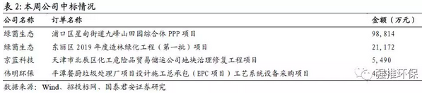 根據(jù)公告與招投標(biāo)信息統(tǒng)計(jì),本周環(huán)保公司中新增訂單4單、中標(biāo)總金額13.01億;新增訂單前三名分別為綠茵生態(tài)、京藍(lán)科技、偉明環(huán)保。