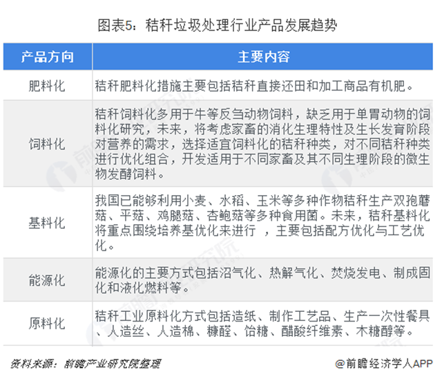 其次,在產(chǎn)品趨勢(shì)方面,秸稈綜合利用行業(yè)產(chǎn)品仍將圍繞“五化”展開,即秸稈肥料化、秸稈飼料化、秸稈能源化、秸稈原料化以及秸稈基料化。