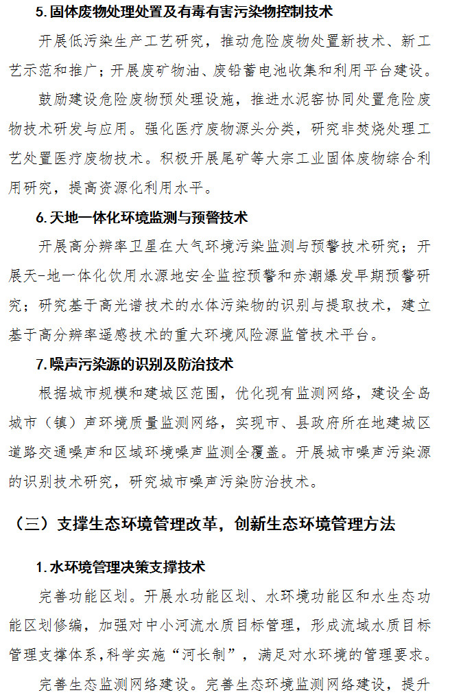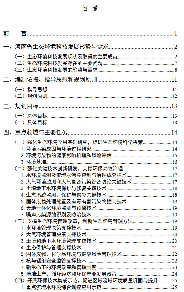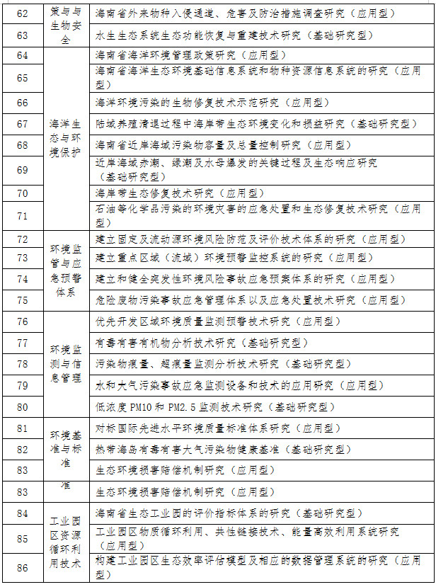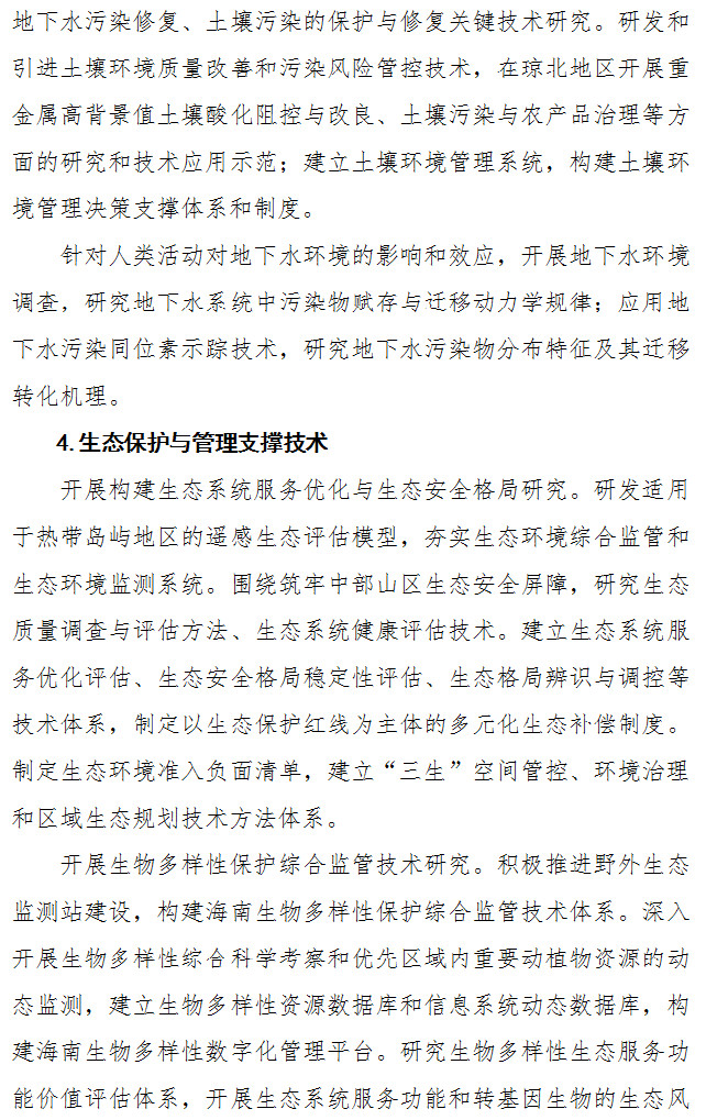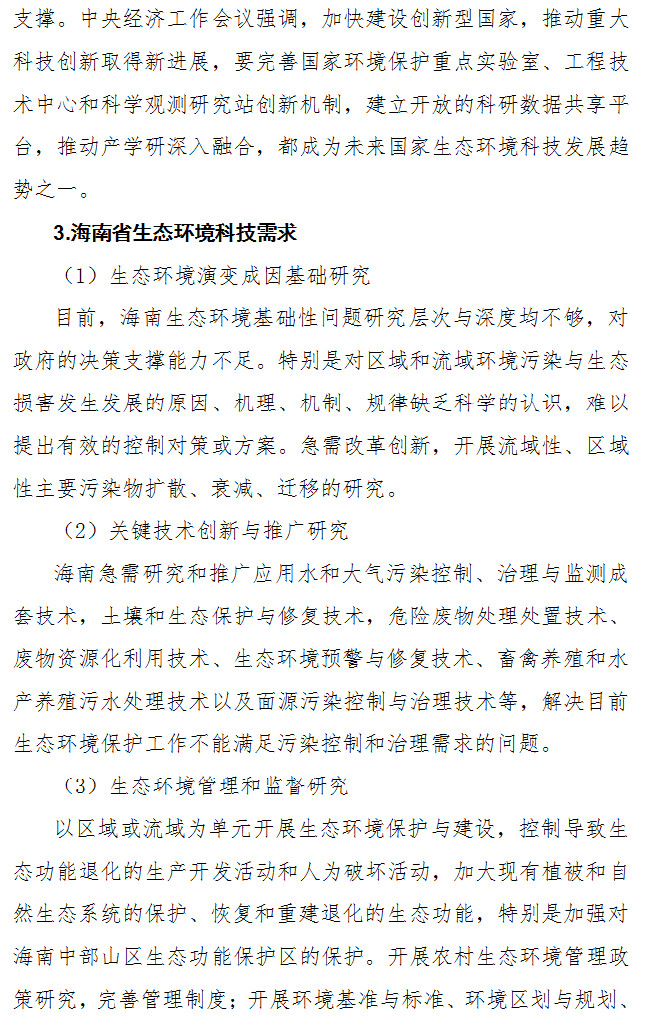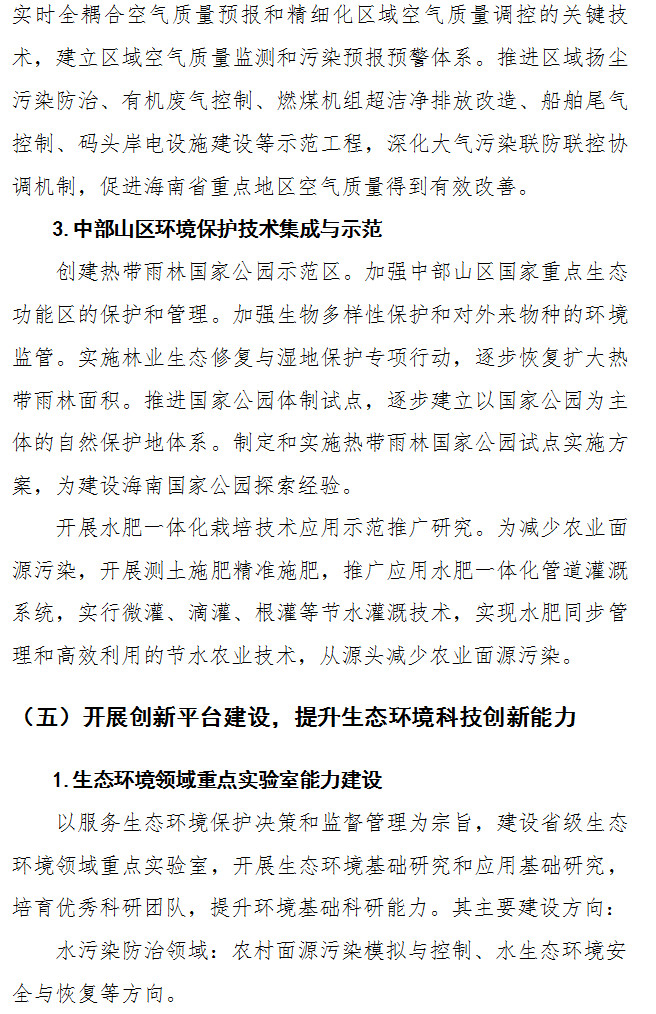 近日,海南省印發(fā)了《海南省生態(tài)環(huán)境科技發(fā)展規(guī)劃(2019-2025)》的通知,通知規(guī)定要強(qiáng)化大氣環(huán)境監(jiān)測(cè)和大氣污染綜合防治關(guān)鍵技術(shù)、水環(huán)境監(jiān)測(cè)及流域水污染控制與治理成套技、土壤地下水環(huán)境保護(hù)與修復(fù)關(guān)鍵技術(shù)、固體廢物處理處置及有毒有害污染物控制技術(shù)等,全文如下: