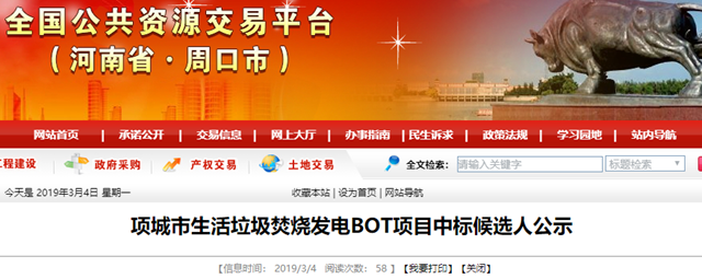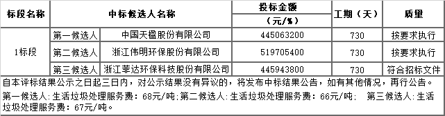 原標(biāo)題:項(xiàng)城市生活垃圾焚燒發(fā)電BOT項(xiàng)目中標(biāo)公示,中國(guó)天楹排名第一