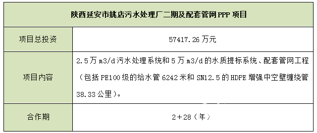 陜西延安市姚店污水處理廠二期及配套管網(wǎng)PPP項目
