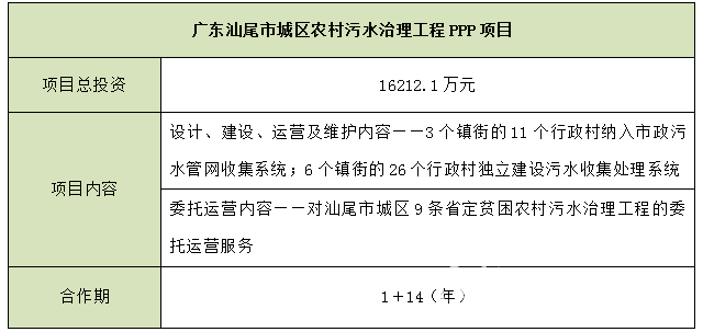 廣東汕尾市城區(qū)農(nóng)村污水治理工程PPP項目
