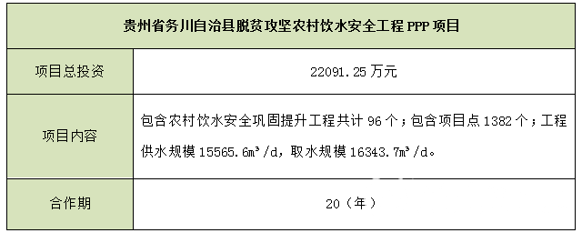 貴州省務(wù)川自治縣脫貧攻堅農(nóng)村飲水安全工程PPP項目