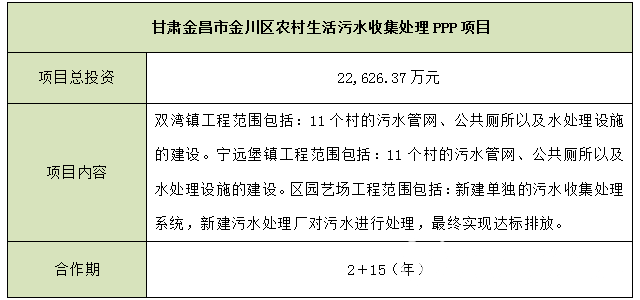 甘肅金昌市金川區(qū)農(nóng)村生活污水收集處理PPP項目