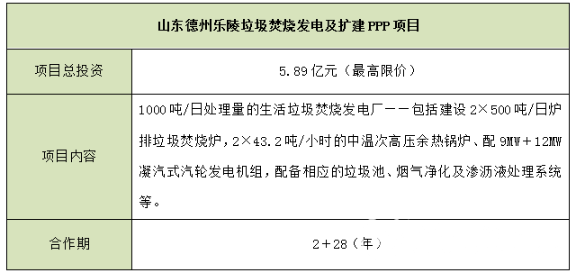 山東德州樂陵垃圾焚燒發(fā)電及擴建PPP項目
