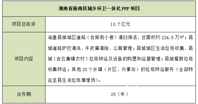 湖南省衡南縣城鄉(xiāng)環(huán)衛(wèi)一體化PPP項目