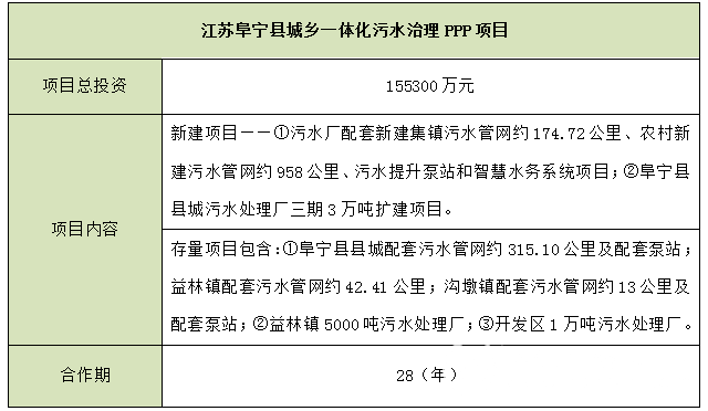江蘇阜寧縣城鄉(xiāng)一體化污水治理PPP項目
