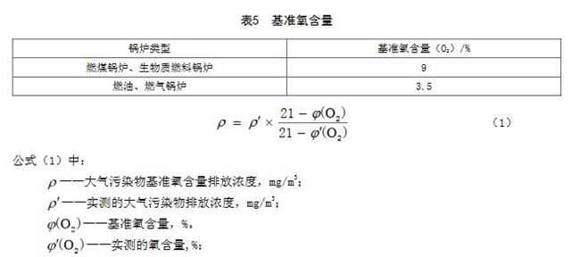 5.2大氣污染物基準氧含量排放濃度折算方法實測的鍋爐顆粒物、二氧化硫、氮氧化物、一氧化碳、汞及其化合物的排放濃度,應執(zhí)行GB5468或GB/T16157規(guī)定,按公式(1)折算為基準氧含量排放濃度。各類燃燒設(shè)備的基準氧含量按表5的規(guī)定執(zhí)行。