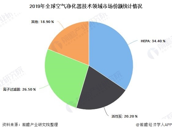 基于技術(shù),空氣凈化器市場細分為HEPA,活性炭,離子過濾器等。從市場情況來看,2019年HEPA技術(shù)領(lǐng)域占有最大的市場份額,因為HEPA過濾器非常有效地捕獲空氣中的顆粒,例如灰塵,花粉,煙霧和生物污染物。