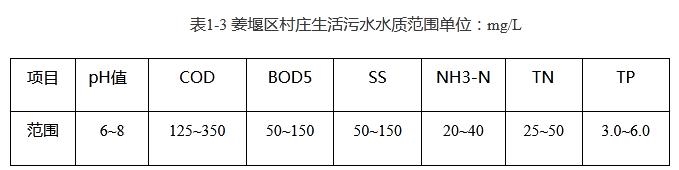 村莊子項目需要覆蓋的村莊收集的均為居民生活污水;來自居民日常的沖廁廢水、淋浴廢水、清洗廢水、廚房廢水等。根據(jù)項目可行性研究報告及批復,確定本項目設計主要進水水質(zhì)如下表。