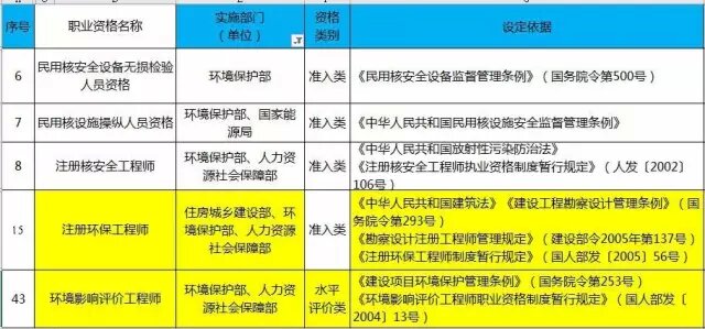 | 8 | 注冊(cè)核安全工程師 | 環(huán)境保護(hù)部、人力資源社會(huì)保障部 | 準(zhǔn)入類 |