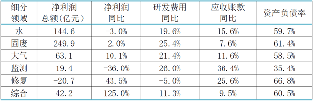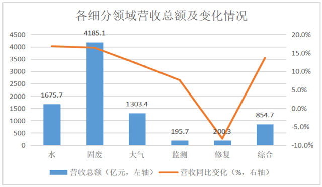 各細(xì)分領(lǐng)域業(yè)績(jī)情況出現(xiàn)分化。177家A股環(huán)保上市公司中,固廢、水務(wù)領(lǐng)域營(yíng)收總額增長(zhǎng)均超15%,修復(fù)領(lǐng)域營(yíng)收總額下降。