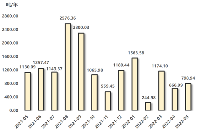 2022年5月,排污權(quán)成交量指標環(huán)比、同比走勢相異,四項排污權(quán)成交量合計為798.94噸,環(huán)比漲幅為19.78%,與上年同期相比下降29.30%。