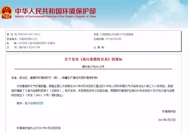答:為落實當(dāng)時《大氣污染防治法》的相關(guān)要求,早在2001年,我部(當(dāng)時是國家環(huán)境保護(hù)總局)就發(fā)布了《關(guān)于劃分高污染燃料的規(guī)定》(環(huán)發(fā)〔2001〕37號),是當(dāng)時環(huán)境保護(hù)重點城市高污染燃料禁燃區(qū)管理的依據(jù),對城市大氣環(huán)境質(zhì)量改善起到了積極的作用。