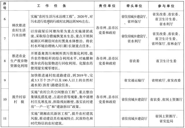 (三)全面推進(jìn)整治任務(wù)。在典型示范、總結(jié)經(jīng)驗的基礎(chǔ)上,集中推廣成熟做法、技術(shù)路線和建管模式。各地要按照總體目標(biāo)任務(wù),分區(qū)域分年度安排整治任務(wù),2018年全面啟動,2019年全面推進(jìn),2020年任務(wù)掃尾、鞏固提升,全面完成各項任務(wù)。各地要優(yōu)先支持貧困縣和貧困村開展人居環(huán)境整治,優(yōu)先整治重要水源地周邊和水質(zhì)需改善控制單元內(nèi)村莊的生活垃圾污水,加強(qiáng)高鐵和高速公路沿線環(huán)境治理。洞庭湖區(qū)和湘江沿岸縣市區(qū)要加快實施。省市有關(guān)部門要加強(qiáng)檢查、評估和督導(dǎo),確保整治工作健康有序推進(jìn)。