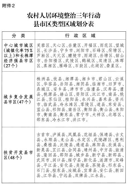 中心城市城區(qū)和長株潭經(jīng)濟(jì)強(qiáng)縣市區(qū)農(nóng)村人居環(huán)境質(zhì)量全面提升,所有村莊生活垃圾得到有效治理,垃圾分類減量和資源化利用全覆蓋,村莊日常保潔機(jī)制全面建立,農(nóng)戶衛(wèi)生廁所普及率達(dá)到100%,廁所糞污基本得到處理或資源化利用,村內(nèi)主要道路全部硬化,人居環(huán)境管護(hù)長效機(jī)制全面建立。