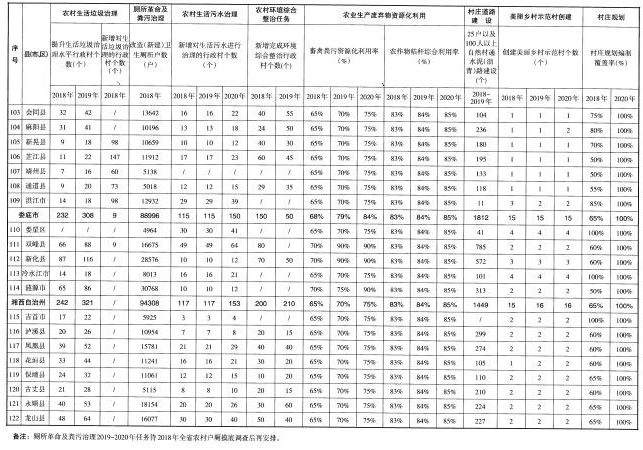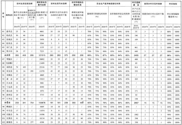 (一)深入推進(jìn)農(nóng)村生活垃圾治理。實施“農(nóng)村生活垃圾治理工程”,加快農(nóng)村垃圾五年專項治理,統(tǒng)籌考慮生活垃圾和農(nóng)業(yè)生產(chǎn)廢棄物利用、處理,建立符合農(nóng)村實際的農(nóng)村生活垃圾收運處置體系,建立穩(wěn)定高效的運行維護(hù)管理機(jī)制。推廣適合農(nóng)村特點的垃圾就地分類和資源化利用方式,不斷提升農(nóng)村垃圾治理水平。對較大規(guī)模的非正規(guī)垃圾堆放點和河道水面漂浮垃圾進(jìn)行清理整治,清理河湖沿岸垃圾,重點整治“垃圾山”、“垃圾島”、“垃圾圍村”、“垃圾圍壩”、工業(yè)污染“上山下鄉(xiāng)”。加強(qiáng)生活垃圾處理技術(shù)研究和設(shè)施研發(fā),鼓勵和支持秸稈、畜禽糞便等農(nóng)業(yè)廢棄物資源綜合利用。2018年,新增對垃圾進(jìn)行處理的行政村2400個左右,全省對垃圾進(jìn)行處理的行政村比例基本達(dá)到90%,每個市州選擇1個縣市區(qū)開展農(nóng)村生活垃圾就地分類和資源化利用的試點。2019年,基本達(dá)到國家農(nóng)村生活垃圾治理驗收標(biāo)準(zhǔn),達(dá)到“五有”標(biāo)準(zhǔn)。2020年,全面完成農(nóng)村生活垃圾治理任務(wù)。