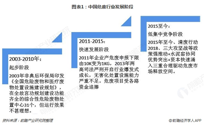 近幾十年來(lái),隨著經(jīng)濟(jì)的高速發(fā)展,我國(guó)環(huán)境污染問(wèn)題和自然資源緊張問(wèn)題逐步凸顯出來(lái)。在環(huán)保壓力逐漸增大的背景下,我國(guó)危廢行業(yè)也得以快速發(fā)展。目前,我國(guó)危廢行業(yè)市場(chǎng)規(guī)模超千億,未來(lái),市場(chǎng)競(jìng)爭(zhēng)格局有望重塑。 危廢行業(yè)進(jìn)入低集中競(jìng)爭(zhēng)階段 截止2018年底,我國(guó)危廢行業(yè)一共經(jīng)理了三個(gè)階段。第一個(gè)階段是2003-...