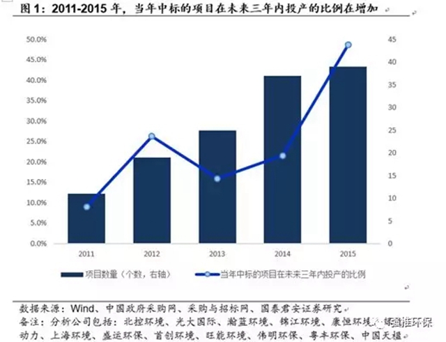 上市公司垃圾焚燒項(xiàng)目開(kāi)工加速,投產(chǎn)周期縮短 1)在對(duì)上市公司所有在手垃圾焚燒項(xiàng)目進(jìn)行統(tǒng)計(jì)的基礎(chǔ)上,我們對(duì)項(xiàng)目從中標(biāo)/簽約到投產(chǎn)的時(shí)間(投產(chǎn)周期)做了進(jìn)一步分析。我們選取的樣本包括北控環(huán)境、光大國(guó)際、瀚藍(lán)環(huán)境、錦江環(huán)境、康恒環(huán)境、綠色動(dòng)力、上海環(huán)境、盛運(yùn)環(huán)保、首創(chuàng)環(huán)境、旺能環(huán)境、偉明環(huán)保、粵豐環(huán)保、中...