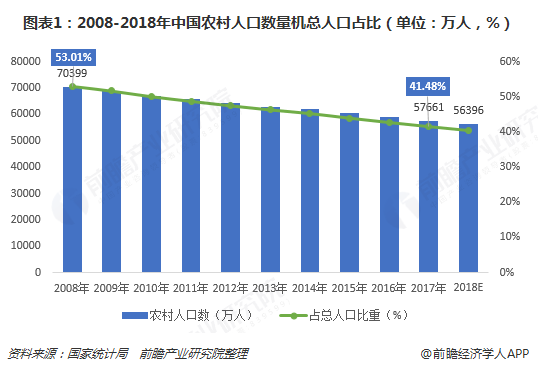近年來(lái),隨著我國(guó)城市化進(jìn)程的不斷推進(jìn),我國(guó)城鎮(zhèn)人口持續(xù)增長(zhǎng),而農(nóng)村人口不斷減少,2008年我國(guó)農(nóng)村人口數(shù)量為70399萬(wàn)人,占全國(guó)人口總數(shù)的50%以上,隨著城市化進(jìn)程的推進(jìn),農(nóng)村大量人口向城市轉(zhuǎn)移,至2017年,農(nóng)村人口數(shù)量下降至57661萬(wàn)人,當(dāng)年全國(guó)大陸總?cè)丝?39008萬(wàn)人,農(nóng)村人口數(shù)占比下降...