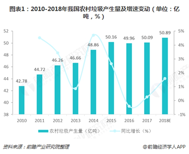 農(nóng)村垃圾產(chǎn)生量持續(xù)增高 近幾年,隨著我國(guó)城市化進(jìn)程的不斷推進(jìn),我國(guó)城鎮(zhèn)人口持續(xù)增長(zhǎng),農(nóng)村人口有減少的趨勢(shì),但是從農(nóng)村垃圾的產(chǎn)生量看,總量不斷增加,人均農(nóng)村垃圾產(chǎn)生量表現(xiàn)為大幅增加的趨勢(shì)。據(jù)統(tǒng)計(jì),2010年我國(guó)農(nóng)村垃圾的產(chǎn)生量為42.78億噸,至2017年農(nóng)村垃圾產(chǎn)生量為50.09億噸,由此可見(jiàn),農(nóng)村...