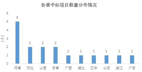 來(lái)自全國(guó)各級(jí)政府采購(gòu)網(wǎng)及公共資源交易平臺(tái)的公開(kāi)消息,2019年1月社會(huì)資本共中標(biāo)17個(gè)固廢PPP項(xiàng)目,投資額總計(jì)超過(guò)52億元。本文將從中標(biāo)項(xiàng)目的省份分布、細(xì)分領(lǐng)域分布、社會(huì)資本及典型項(xiàng)目等角度分別展開(kāi)簡(jiǎn)要分析。 河南省拔得頭籌 本月固廢項(xiàng)目分布在全國(guó)10個(gè)省份,僅河南省中標(biāo)項(xiàng)目數(shù)量達(dá)5個(gè),河北、山西...
