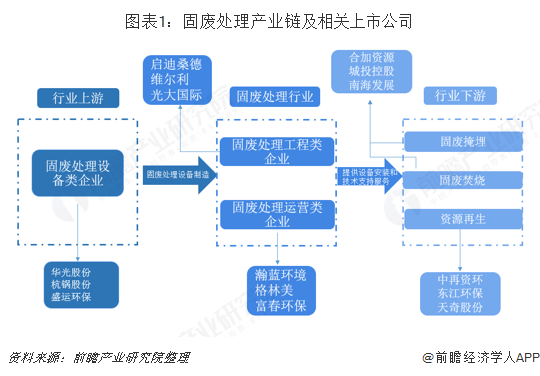 我國(guó)固廢處理行業(yè)已經(jīng)形成了較為成熟的產(chǎn)業(yè)鏈,其中上游行業(yè)為固廢處理裝備制造;中游行業(yè)按照公司主營(yíng)業(yè)務(wù)類別不同可以分為固廢處理工程類企業(yè)和固廢處理運(yùn)營(yíng)類企業(yè);下游行業(yè)為固廢處置衍生行業(yè),主要分為固廢掩埋、固廢焚燒和資源再生。上游行業(yè)較為成熟,為固廢處理行業(yè)打下良好的基礎(chǔ);中游行業(yè)參與者多為上市公司,行...